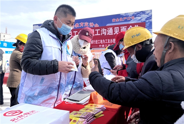 中建三局携手延庆区总工会、北京银行进工地为工友办理工会卡