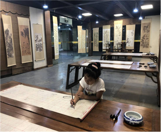 中国书画的演进历程是从意义到趣味的。同行的海外成长的小华人在名画书法档案、书画家传奇故事、绘画知识的介绍中纷纷提问,兴趣盎然。讲解员妙趣横生的解说让这些成长在海外的孩子第一次接触到了中国名画背后鲜为人知的中国故事,更加身临其境地感受了中国书画艺术所蕴含的人文精神。闲暇时光中,能与孩子一起看书画中的中国,看书堂山的千年艺术光辉照进每个海外孩子的心田,如眼前书堂山前淡逸的荷塘,清润温雅。这就是我们中国文化的魅力之处!