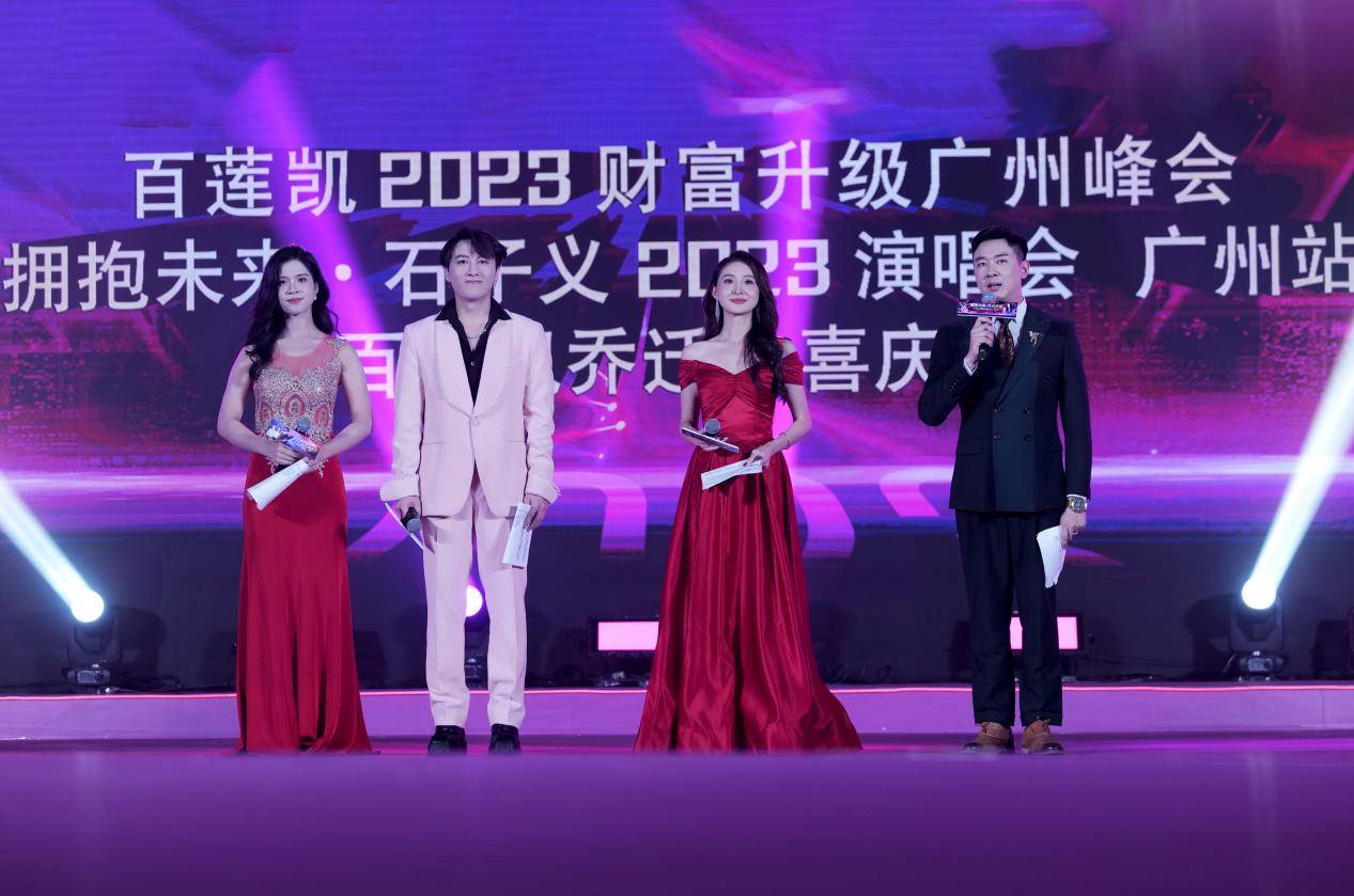 2023年8月28日,继武汉站、北京站,「拥抱未来」石子义2023演唱会·广州站燃炸开唱。著名华语流行男歌手陆昶旭、央视星光大道明星褚瑶、著名音乐人李松华、民歌小天后张琼、青年歌手陈佳、魅力女神吴倩等明星到场支持献唱,现场星光璀璨,音浪此起彼伏,震撼又美妙。演唱会通过直播方式与全球乐迷共享,直播观看人次突破420万,现场直呼过瘾。作为百莲凯集团总裁,石子义兼具歌手、词作家等文艺身份,此次演唱会同时受到商界、文艺界和大众的高度关注,媒体纷纷报道,广受好评。