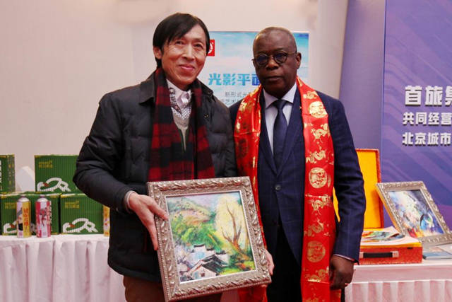 光影平面油画在此亮相,作品《江南秋色》被安哥拉大使馆收藏。