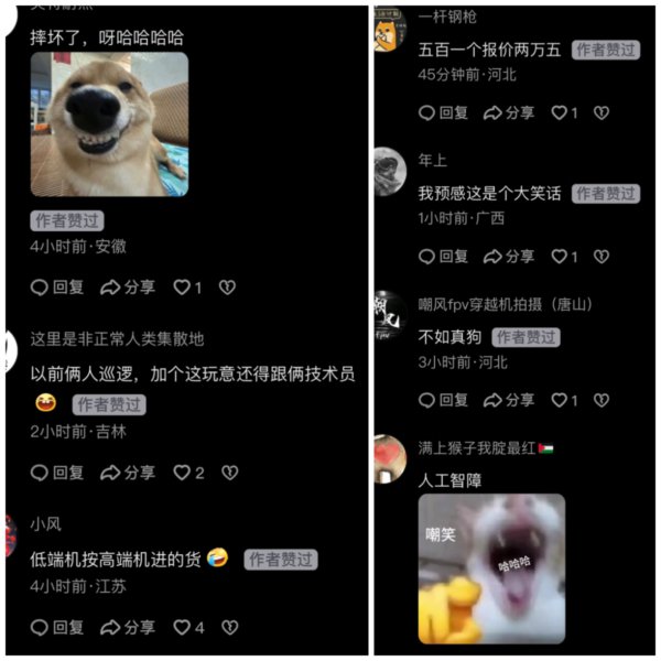 视频上传到大陆社交媒体上,也引发热议:“以前俩人巡逻,加个这玩意还得跟俩技术员”,“低端机按高端机进的货”,“五百一个报价两万五”“不如真狗”。